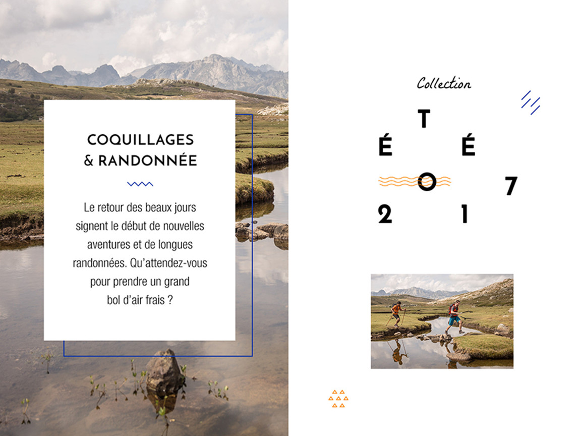 Conception graphique du look book été 2017 randonnée, pour Quechua. Diffusion sur les réseaux sociaux et sur la plateforme de marque.