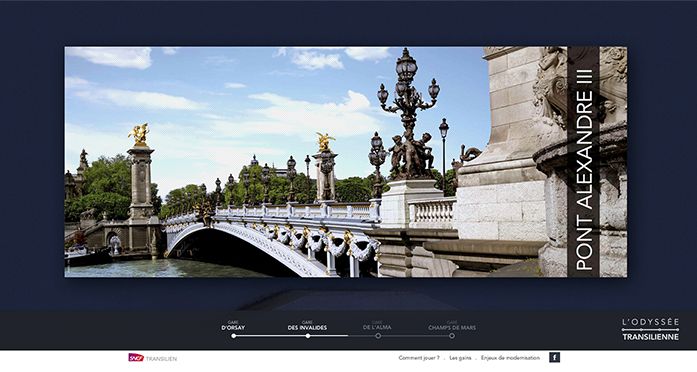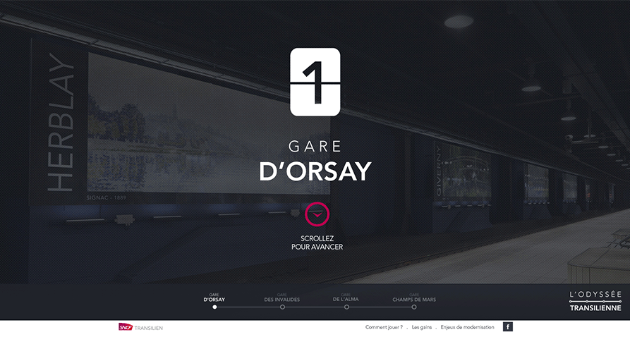 Site événementiel avec une navigation en vidéo 360 à travers 7 gares et 7 jeux interactifs, pour l’inauguration de la nouvelle gare d’Orsay, à Paris.