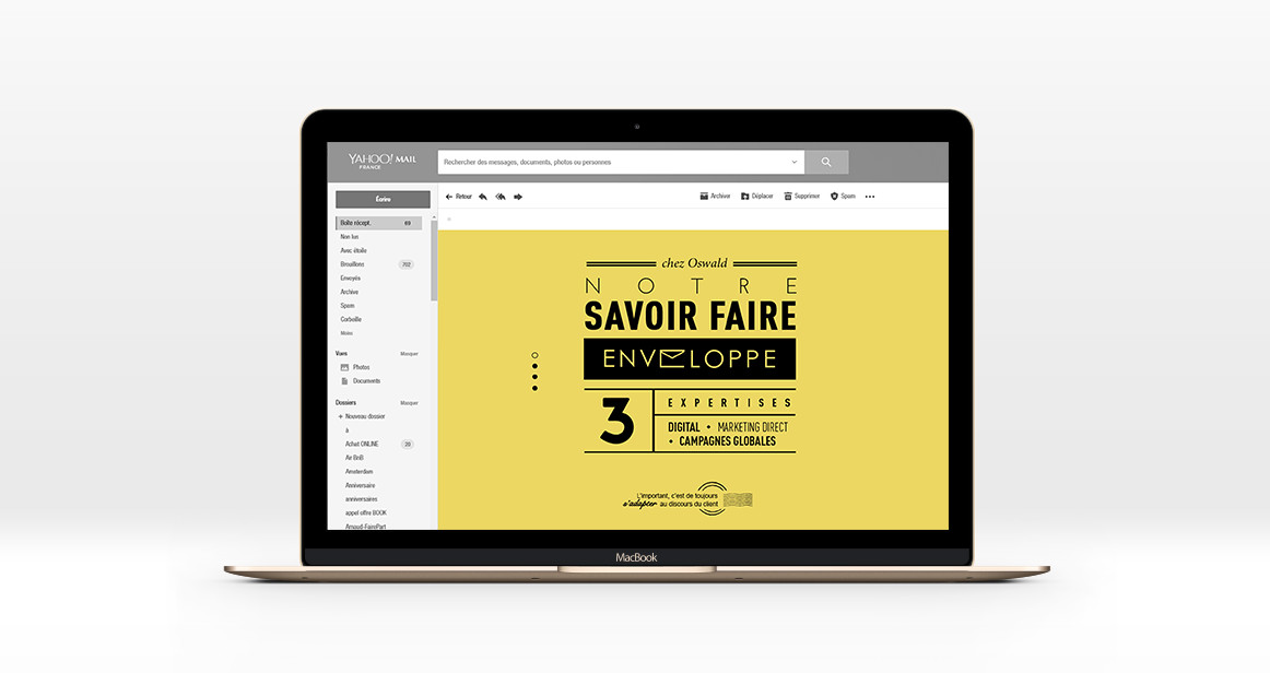 Création d’un emailing décalé pour La Poste, pour mettre en avant l’une des agences de com’ référentes du groupe : Oswald Orb. Principe de Gif Typographique.