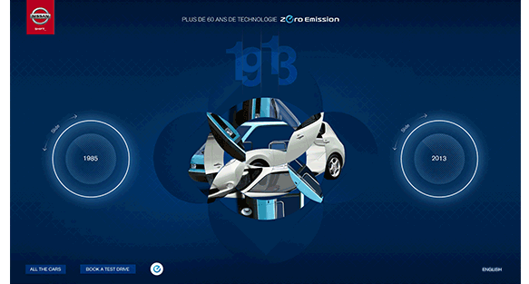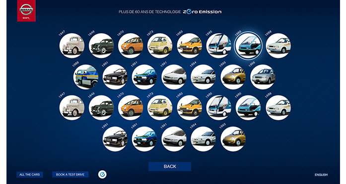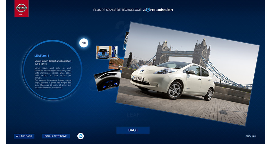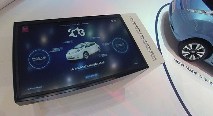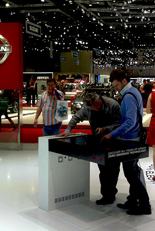 Nissan Geneva Motor Show – Dispositif interactif sur Table Surface, pour Nissan "Leaf", la dernière voiture électrique de Nissan, présentée au salon de l’automobile de Genève.