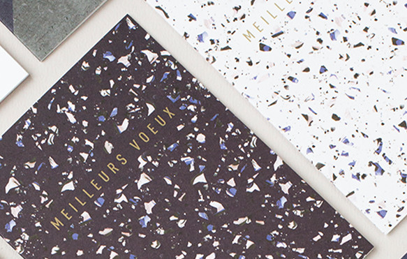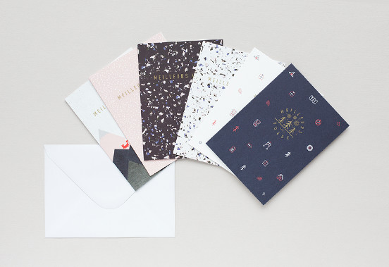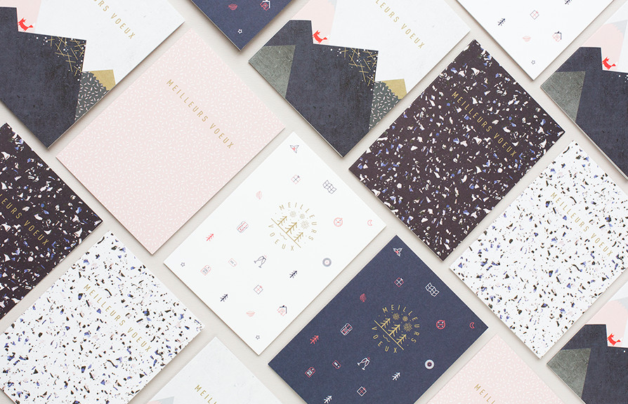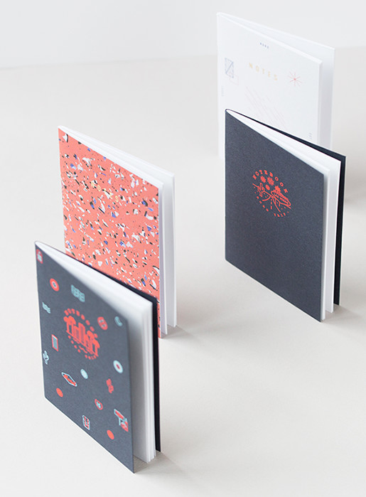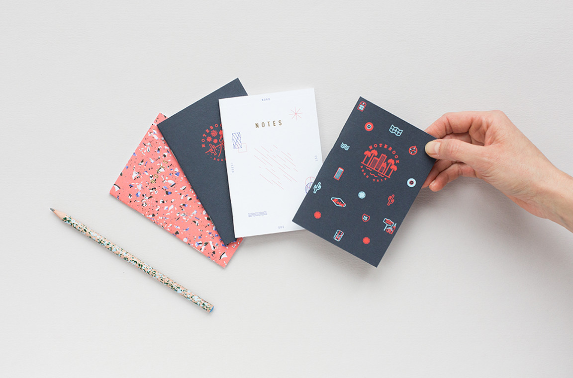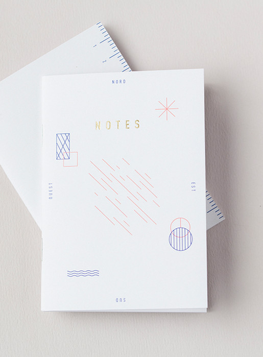 Création d’une collection de petits carnets de notes A6, sérigraphiés et dorés à chaud, ainsi que d’une série limitée de carte de vœux. Le tout imprimé et relié en France.