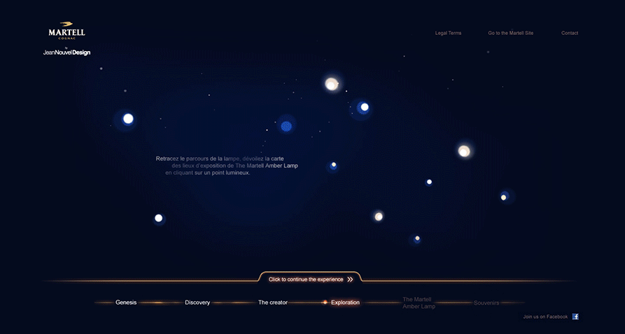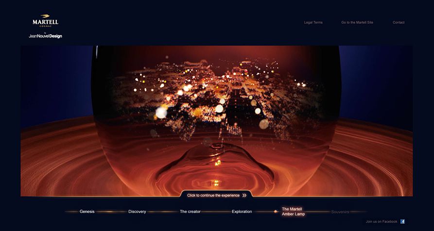 Création d’un mini site événementiel dans le cadre du lancement de la lampe “Amber Lamp” créée par Jean Nouvel pour Martell, en édition limitée. Voyage immersif et onirique en 3D au cœur d’une ville de particules de lumière.